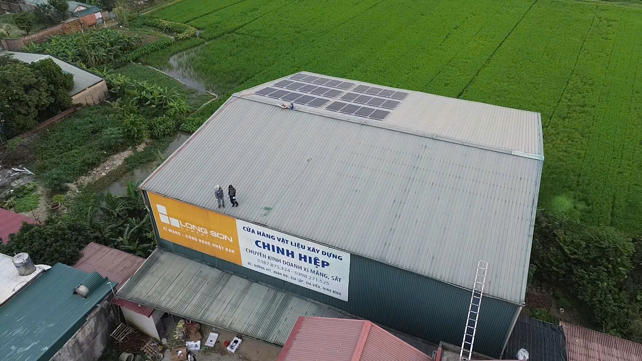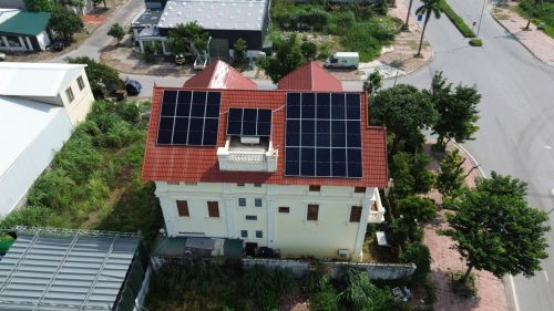 Dự án Hệ thống điện mặt trời 16KWP – Gia Vân, Ninh Bình Chi tiết dự án: Công suất: 16 kWp Tấm pin mặt trời: 27 tấm Pin Jinko 580Wp Inverter: Deye 3 pha Hybrid 16 KW Pin lưu trữ: EENOVANCE 16 kW x 2 Diện tích lắp đặt: 48 m² Sản lượng điện:1400–2400kW/tháng Hoàn thành : 09.2025