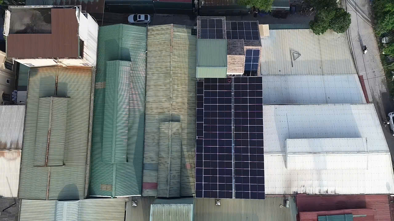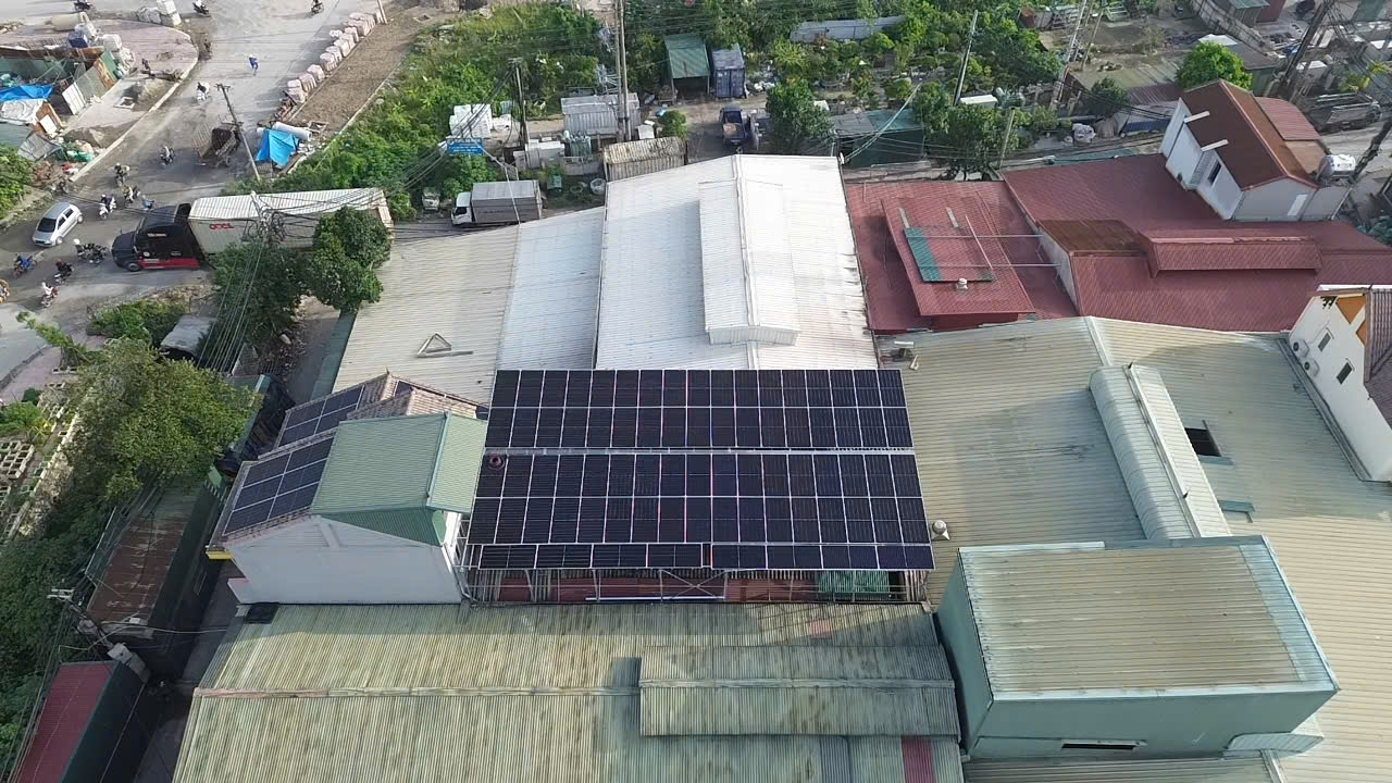 Dự án Hệ thống điện mặt trời 54KWP – Làng Khoai, Hưng Yên Chi tiết dự án: Công suất: 54 kWp Tấm pin mặt trời: 92 tấm Pin Jinko 585Wp Inverter: Deye 50 KW Pin lưu trữ: Diện tích lắp đặt: 162 m² Sản lượng điện:4860–8000kW/tháng Hoàn thành : 10.2025
