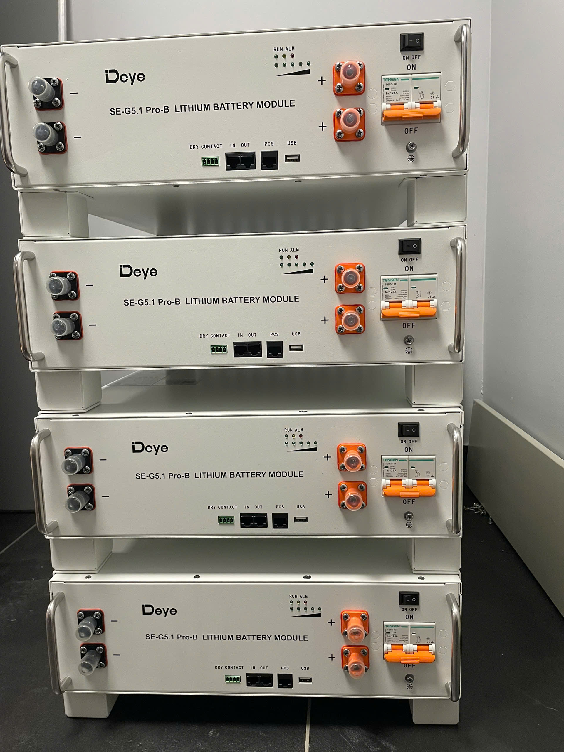 - Pin lưu trữ: Deye SE-G5.1 Pro-B 51,2V-100Ah áp cao x4