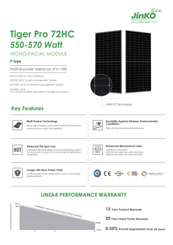 Tấm Pin NLMT Jinko solar Tiger Pro 72HC 550-570w